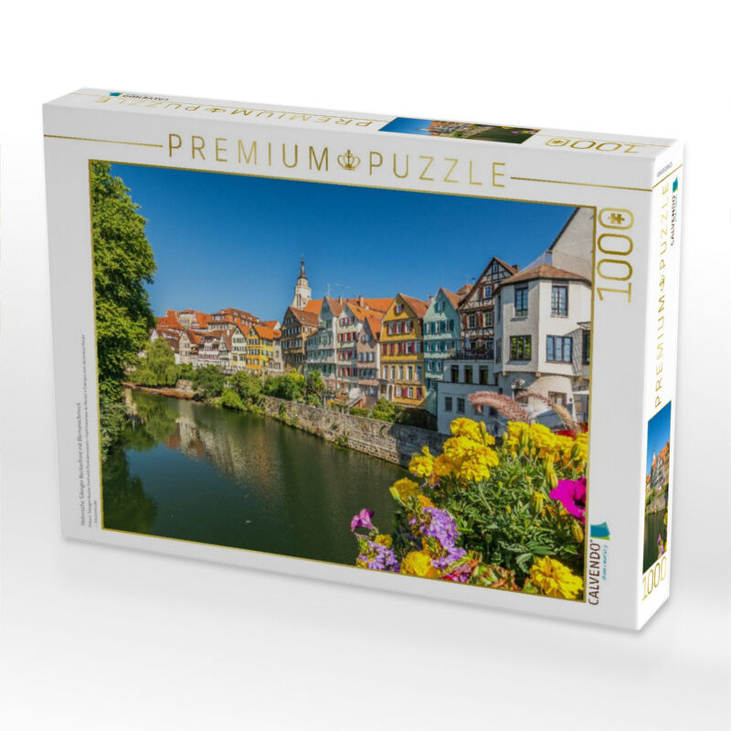CALVENDO Puzzle Historische Tübinger Neckarfront mit Blumenschmuck | 1000 Teile Lege-Größe 64x48cm Foto-Puzzle für glückliche Stunden
