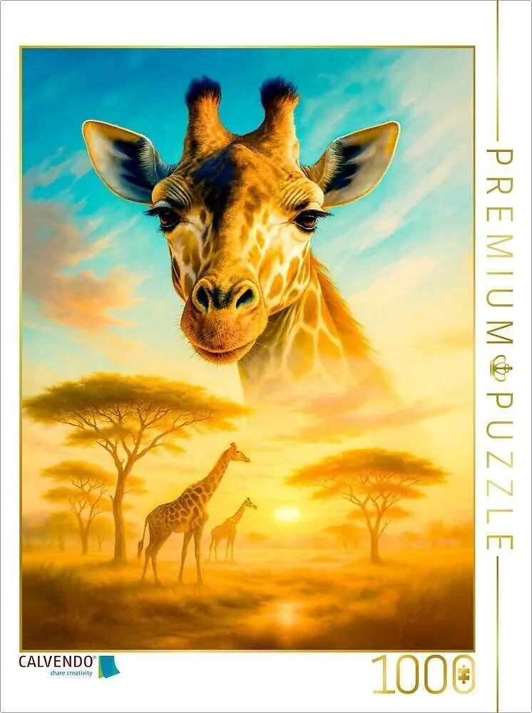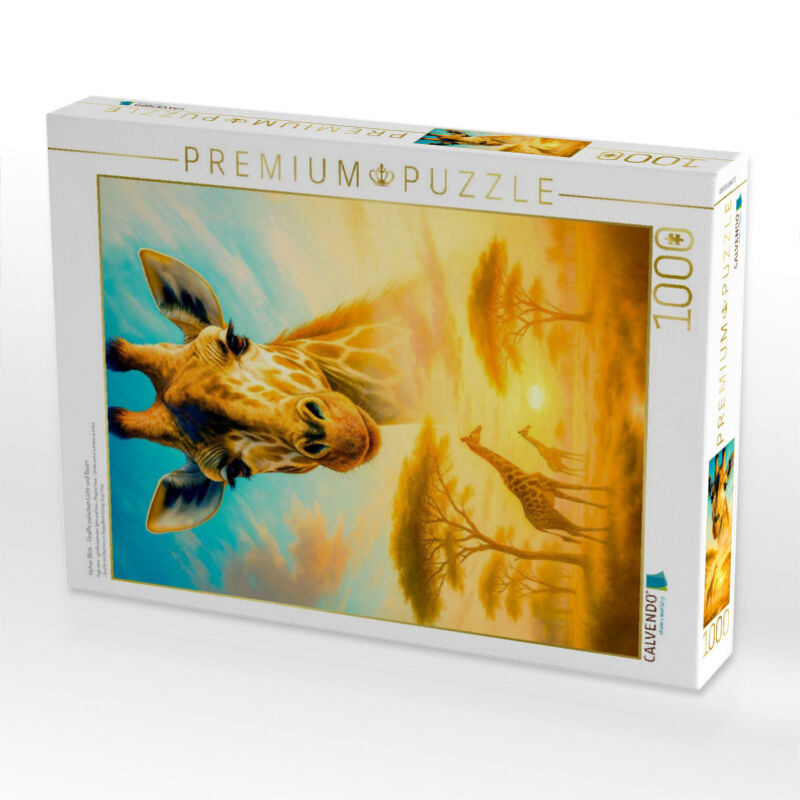 CALVENDO Puzzle Hoher Blick - Giraffe zwischen Licht und Baum | 1000 Teile Lege-Größe 64x48cm Foto-Puzzle für glückliche Stunden