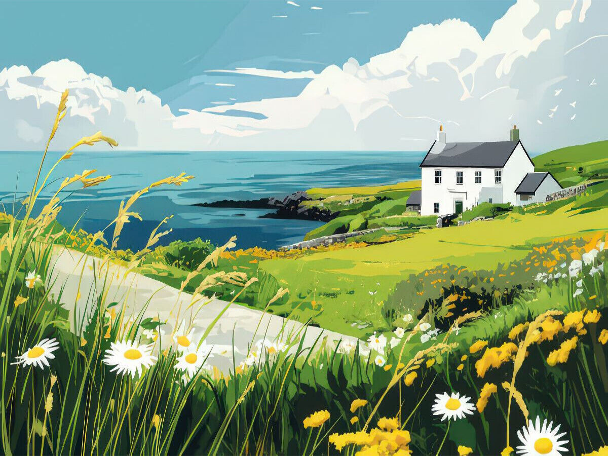 Erleben Sie die malerische Schönheit der irischen Küstenlandschaft mit unserer lebendigen, farbenfrohen Illustration, die die Essenz dieser idyllischen Region einfängt. Ob als faszinierendes Puzzle oder als beeindruckende Leinwand - dieses Kunstwerk bringt die...