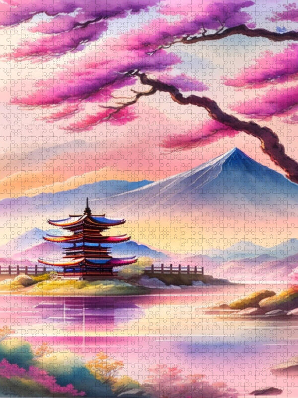 Tauche ein in eine Welt voller Ruhe und Harmonie mit unserem Produkt "Pagode auf einer Insel". Ein bezauberndes Bild, das mithilfe von KI erstellt wurde, zeigt eine Pagode auf einer idyllischen Insel, umgeben von einem klaren See und blühenden Mandel...