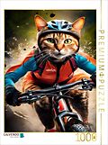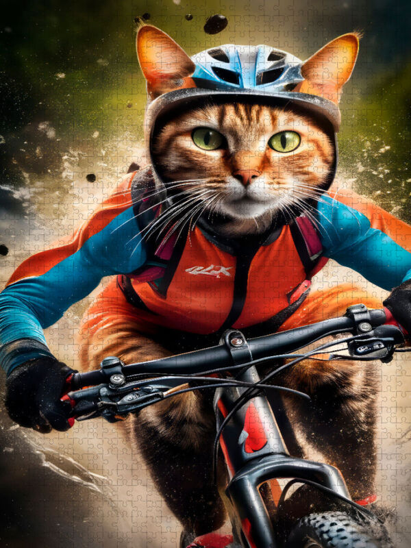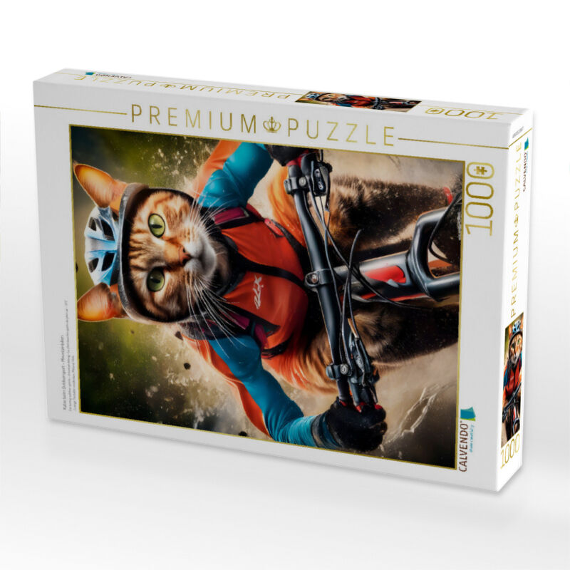 CALVENDO Puzzle Katze beim Outdoorsport - Mountainbiken | 1000 Teile Lege-Größe 64x48cm Foto-Puzzle für glückliche Stunden