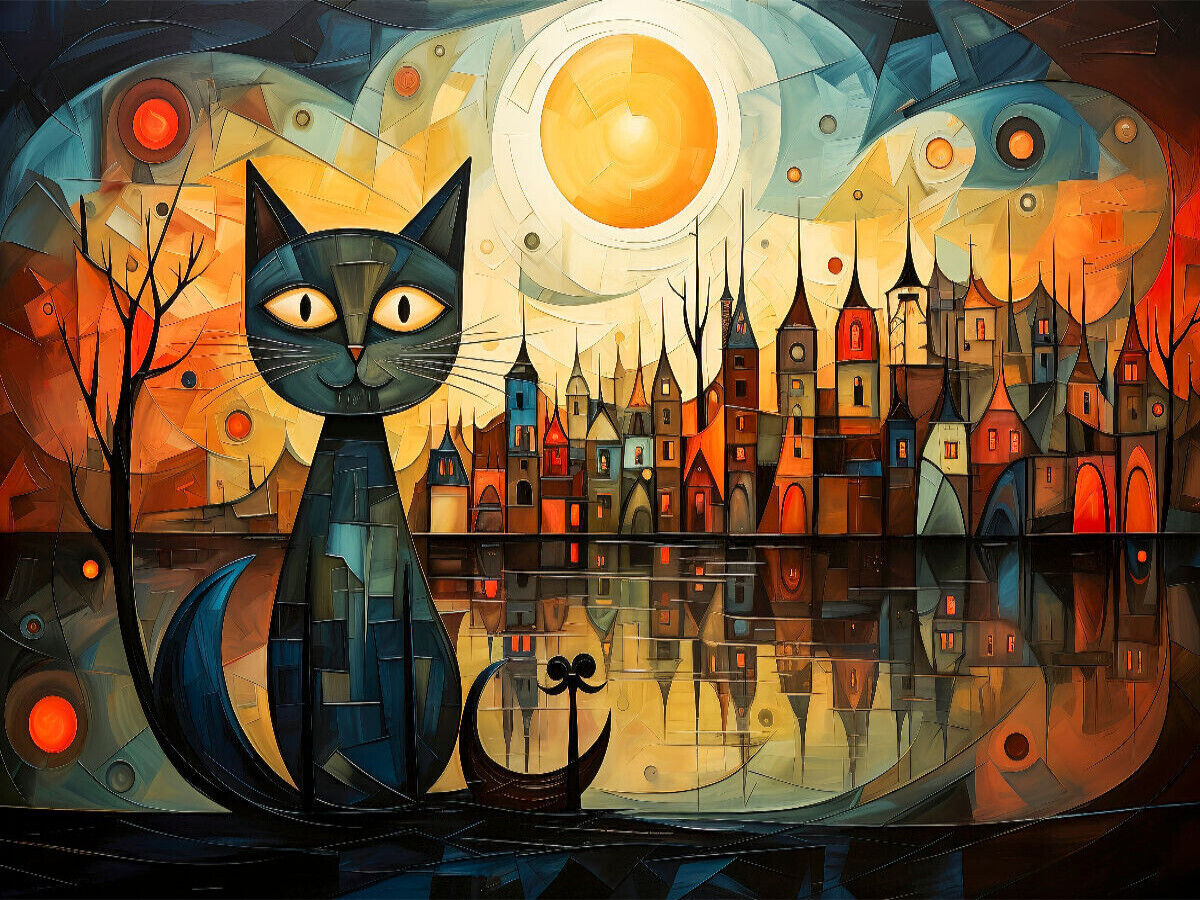 Gönnen Sie sich das Außergewöhnliche, ein Meisterwerk katzenhaften Charmes vor expressionistischen und kubistischen Hintergründen! Lassen Sie sich entführen an geheimnisvolle Orte, wo sich das mysteriöse Leben der Katzen bei Nacht abspielt. Ein atemberaubendes...