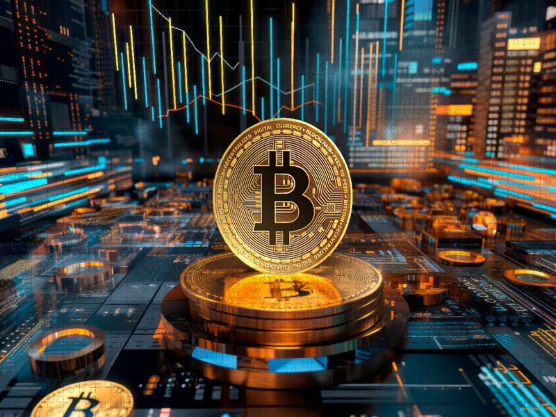 Moderne abstrakte Collage zur innovativen Blockchain-Technologie mit Bitcoins und einer futuristisch anmutenden Impression. Tauchen Sie ein in die Welt der Bits und Bytes, Charts, dem Bitcoin Mining, Traden und HODLN. Das geniale Motiv wurde in Zusammenarbeit ...