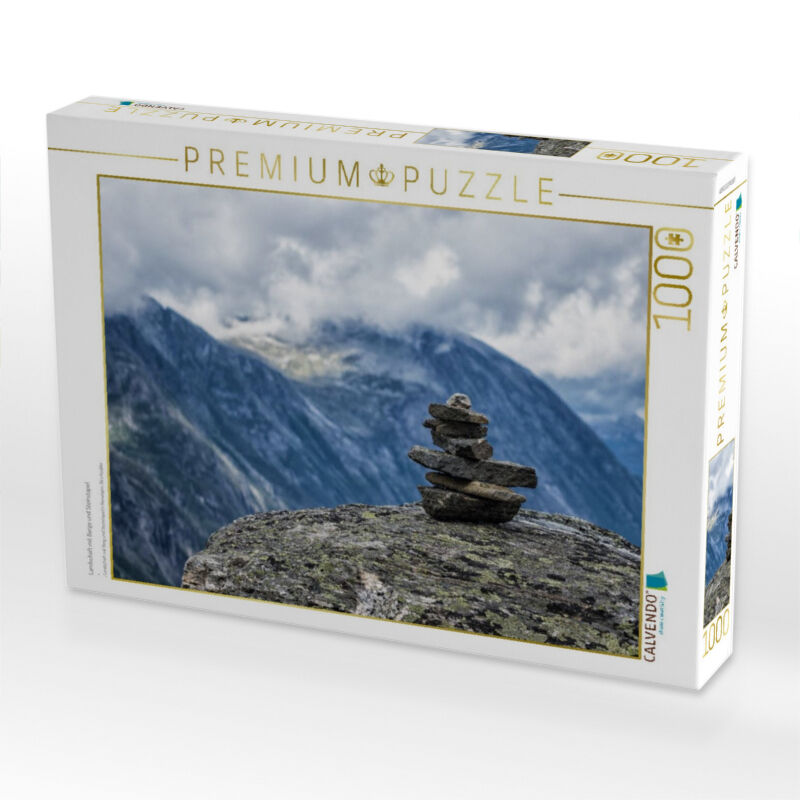 CALVENDO Puzzle Landschaft mit Berge und Steinstapel | 1000 Teile Lege-Größe 64x48cm Foto-Puzzle für glückliche Stunden
