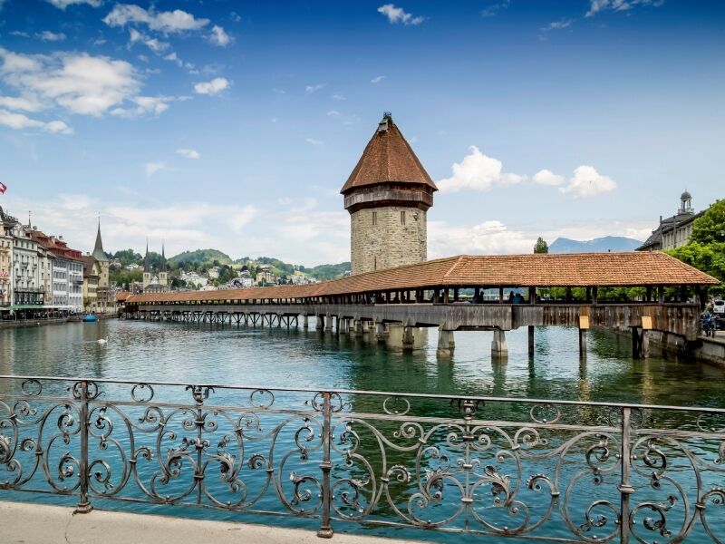 Der Wasserturm in der Mitte der Kapellbrücke ist Teil der historischen Stadtbefestigung von Luzern. Er entstand vor dem Bau der Brücke in der ersten Hälfte des 14. Jahrhunderts. Eine herrliche idyllische Ansicht.Ein Motiv aus dem Kalender "LUZERN Idyllisc...