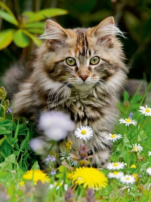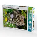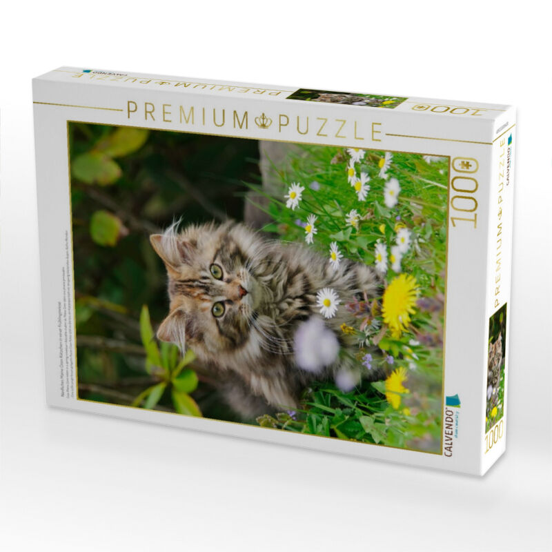 CALVENDO Puzzle Niedliches Maine Coon Kätzchen in einer Frühlingswiese | 1000 Teile Lege-Größe 64x48cm Foto-Puzzle für glückliche Stunden