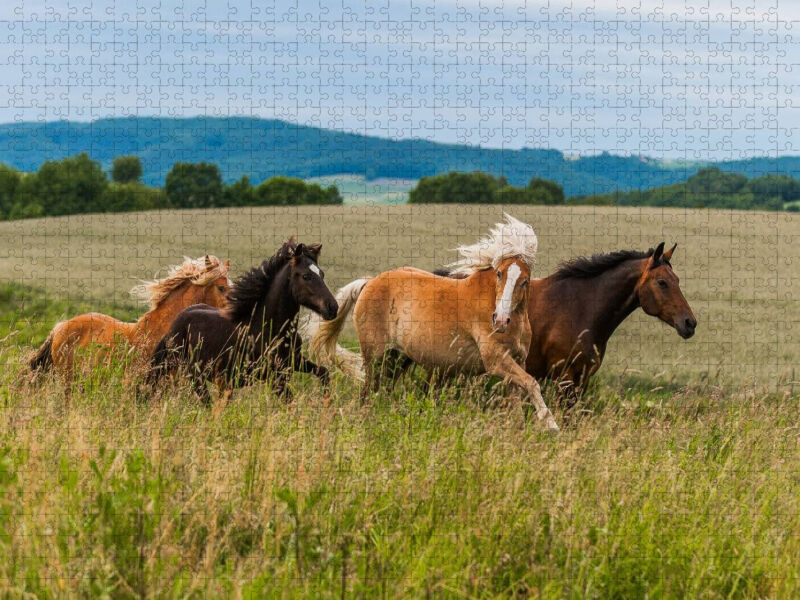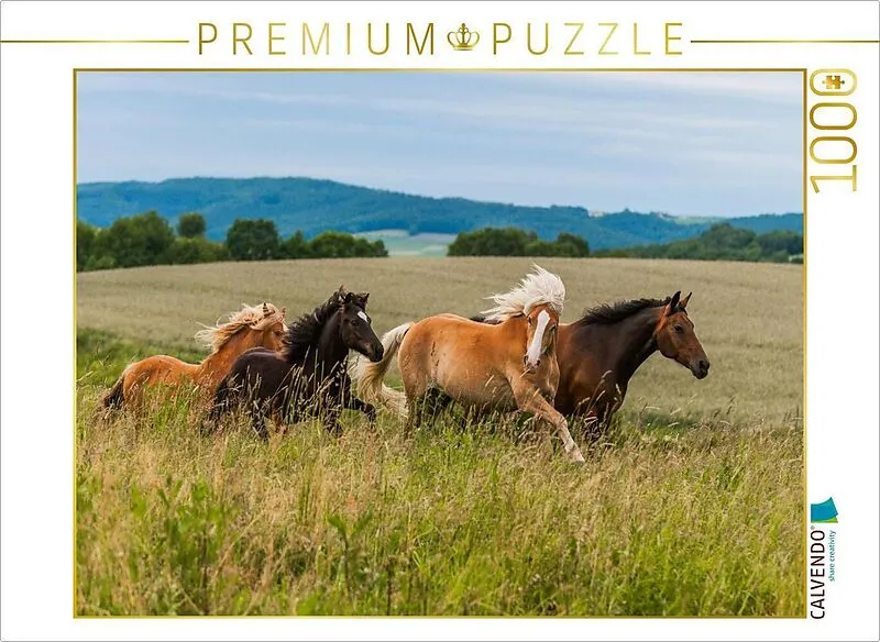 CALVENDO Puzzle Pferdeherde auf der Weide | 1000 Teile Lege-Größe 64x48cm Foto-Puzzle für glückliche Stunden