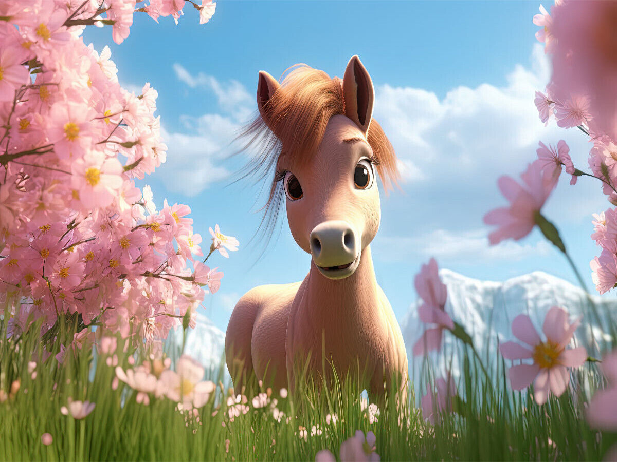 Ein Motiv aus dem Kalender "Niedliche Ponys" von Sabine Löwer. Ponys lassen die Herzen unserer Kinder höherschlagen. Das zauberhafte KI generierte Bild ist eine tolle Geschenkidee für Kinder und eine schöne Dekoration im Kinderzimmer.