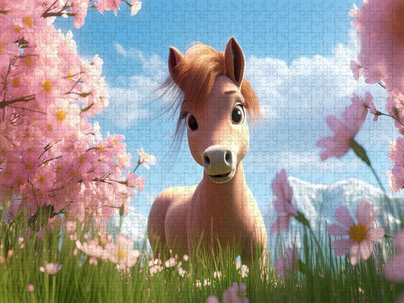 CALVENDO Puzzle Pony Dreamy unter blühenden Bäumen | 1000 Teile Lege-Größe 64x48cm Foto-Puzzle für glückliche Stunden
