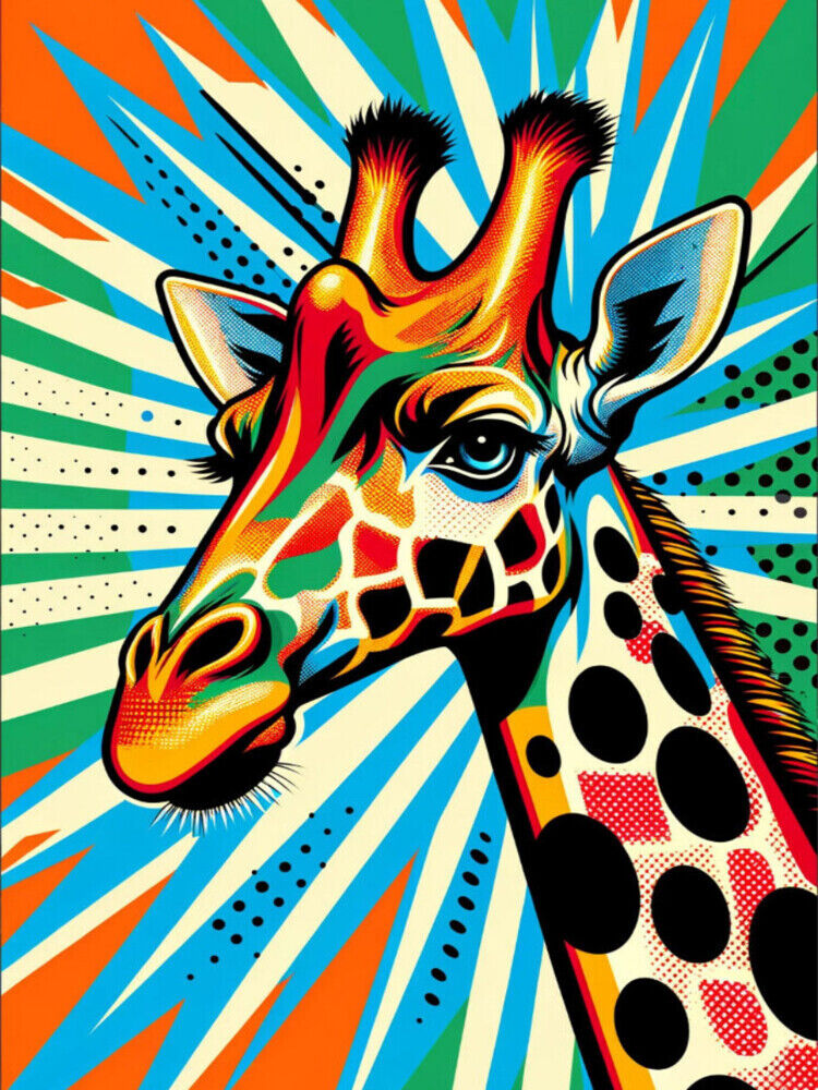 Erleben Sie den nostalgischen Flair der Siebziger mit "Vintage Charme: Die Giraffe im Stil der 70er". Dieses einzigartige Kunstwerk verbindet die elegante Silhouette einer Giraffe mit dem unverwechselbaren Retro-Stil der 70er Jahre. Lebendige Muster ...