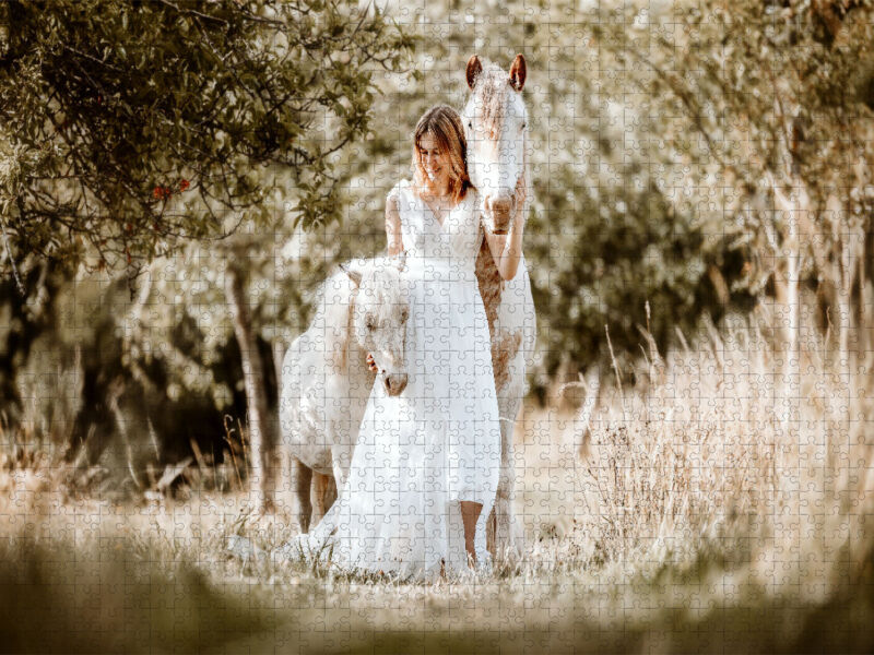 Entdecken Sie die Magie der Freundschaft mit unserem neuesten Bild, das die unzertrennliche Bindung zwischen einer jungen Besitzerin und ihren treuen Gefährten, einem bezaubernden Shetland Pony und einem prächtigen Tinker, einfängt. Dieses Bild ist mehr als nu...