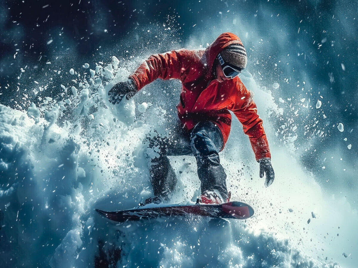 Tauchen Sie ein in die Magie des Snowboarden - spüren Sie den frischen Schnee unter Ihrem Snowboard, genießen Sie die Geschwindigkeit und erobern Sie die Pisten. Egal, ob Sie ein Geschwindigkeitsfanatiker oder ein Landschaftsliebhaber sind, dieses Bild fängt d...