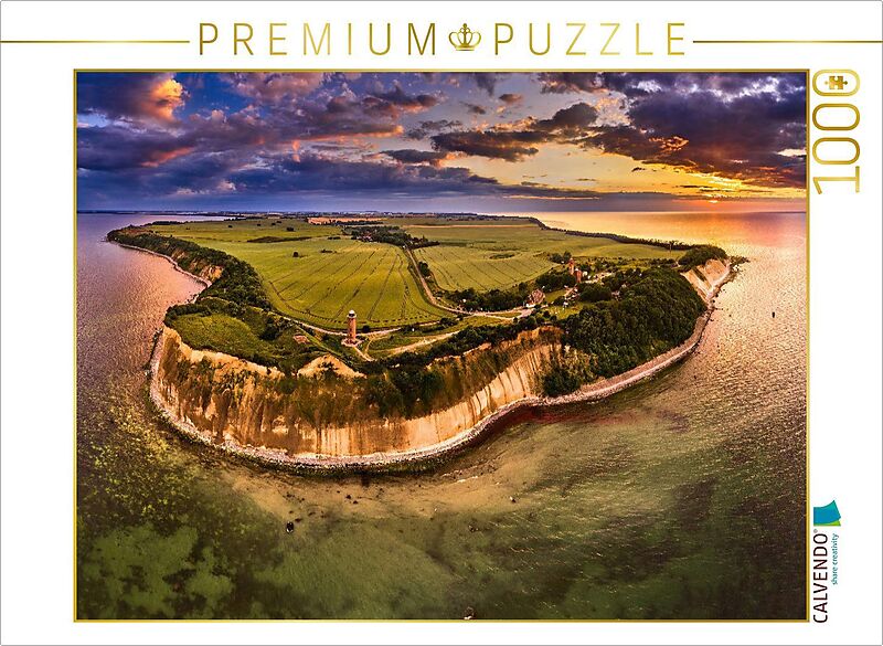Das Kap Arkona auf Rügen - eine wahre Perle der Ostsee! Diese eindrucksvolle Luftaufnahme zeigt die atemberaubende Schönheit der markanten Steilküste, die im Licht des Sonnenuntergangs in warmen Farben erstrahlt. Die berühmten Leuchttürme, Wächter der Küste, u...