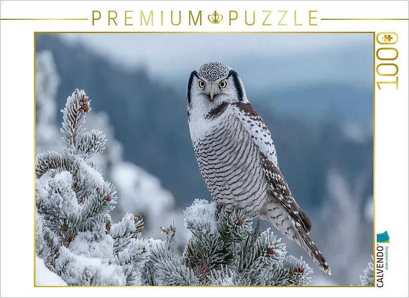 Mit scharfem Blick sitzt die Sperbereule auf einem verschneiten Ast im frostigen Nadelwald. Ihr markantes Gefieder und die wachsame Haltung spiegeln die Schönheit und Stärke dieser faszinierenden Vogelart wider. Das Zusammenspiel aus winterlicher Landschaft, k...
