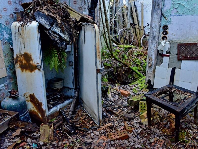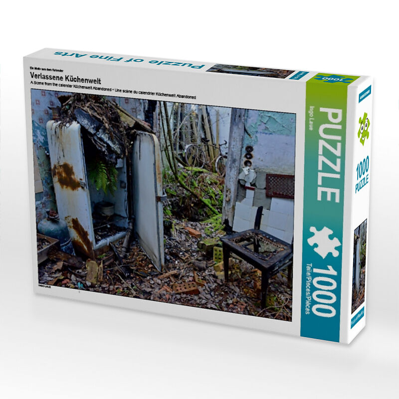 Ein Motiv aus dem Kalender Verlassene Küchenwelt / Ingo Laue: Ein Entrecote bitte, so muss es wohl durch die Küche gehallt haben, bis sie eines Tages abgebrannt ist. Verlassen und unberührt schlummert diese Küche im tiefsten Wald Frankreichs und das seit Jahrz...