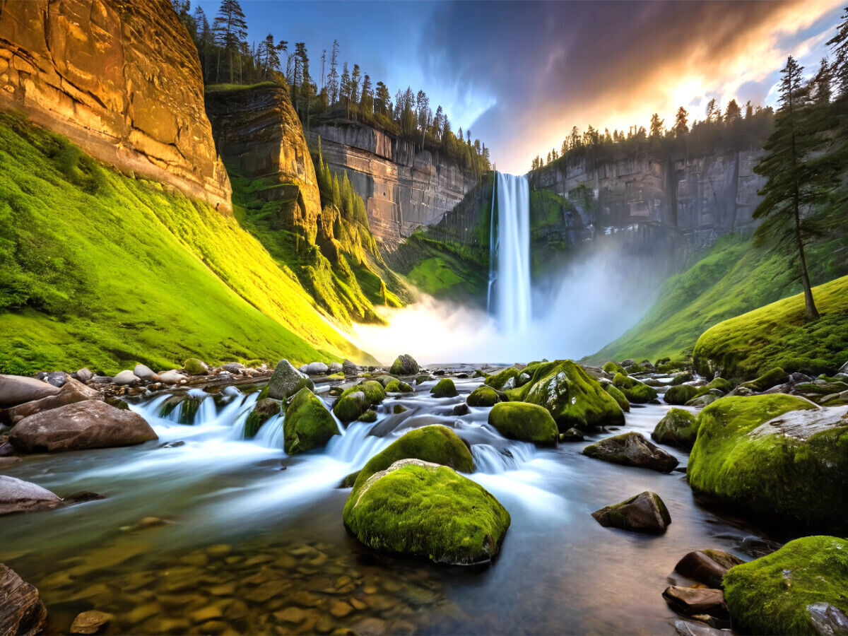 Diese eindrucksvolle Flusslandschaft existiert nur in der Vorstellung - und wirkt doch erstaunlich real. Mit Liebe zum Detail und einem Gespür für Licht, Tiefe und Atmosphäre wurde hier eine fiktive Naturkulisse erschaffen, die Sehnsucht weckt und zum Träumen ...