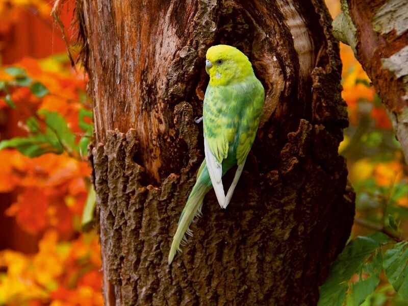 Diese atemberaubende Aufnahme des Naturfotografen Björn Bergmann zeigt eines der außergewöhnlichsten Wellensittich-Motive der letzten Jahre. Ein prachtvoller Wellensittich inmitten leuchtend bunter Herbst-Impressionen. Diese wunderschöne, einmalige Aufnahme en...