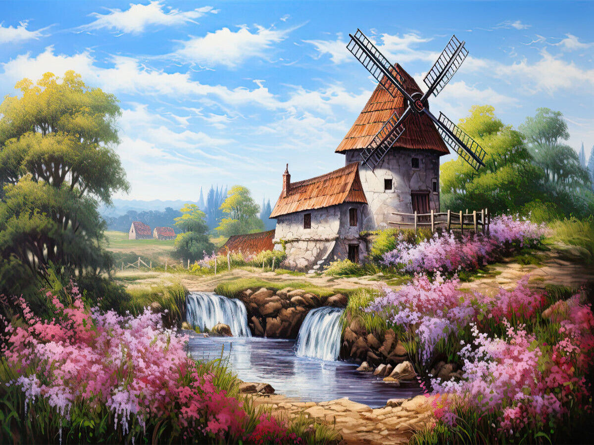 Sie haben den Charme vergangener Zeiten und nehmen uns mit auf eine Zeitreise: Windmühlen, anziehend und geheimnisvoll. In Deutschland wurden sie bereits im 14. Jahrhundert gebaut und dienten vornehmlich zum Mahlen von Mehl. Dieses zauberhafte KI-Gemälde einer...