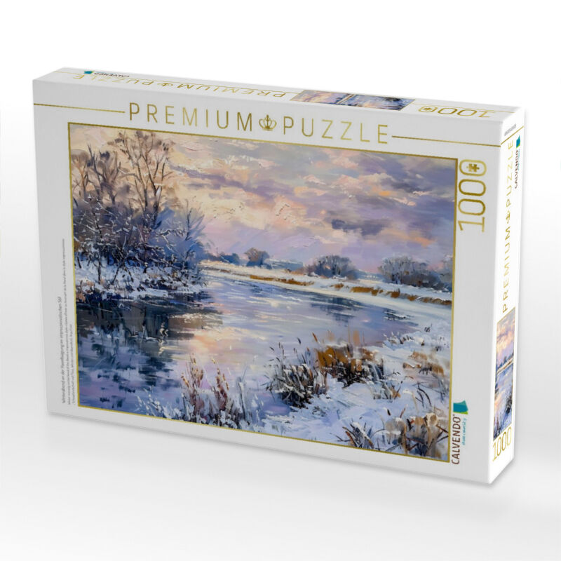 Stille liegt über der Havel: Eine verschneite Wiese, alte Weiden am Flussufer und der letzte Lichtschimmer des Tages zaubern eine friedliche Winterstimmung. Dieses eindrucksvolle Motiv aus dem Kalender "Sehnsucht nach Brandenburg - Zwischen Havel und Himm...