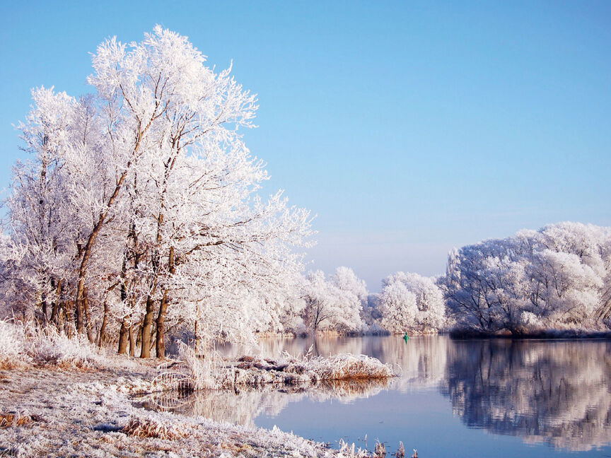 Ein Motiv aus dem Kalender "Raureifzauber im Havelland" von Anja Frost: Winterlandschaften üben immer einen besonderen Reiz aus, aber wo Nebel auf eisige Kälte trifft, überzieht Raureif das Land mit einem weißen Kleid aus zerbrechlichen Eiskristallen...