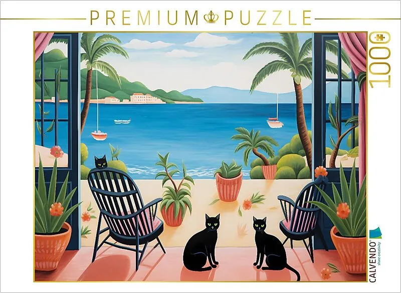 CALVENDO Puzzle Zwei Katzen im Strandhaus | 1000 Teile Lege-Größe 64x48cm Foto-Puzzle für glückliche Stunden