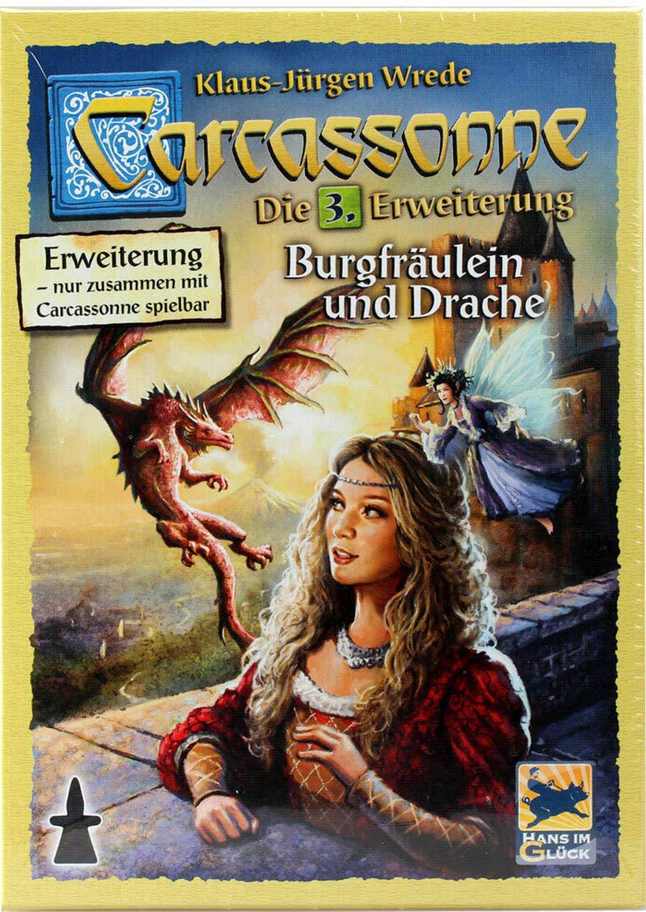 In dieser 3. Erweiterung zum preisgekrönten Spiel Carcassonne - dem Spiel des Jahres 2001 - begeben wir uns ins Reich der Fantasie: Das Land um Carcassonne wird von einem Drachen heimgesucht, der den Gefolgsleuten das Leben schwer macht. Tapfere Helden stellen...