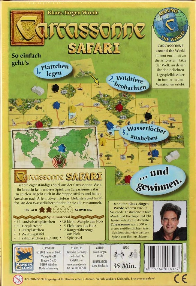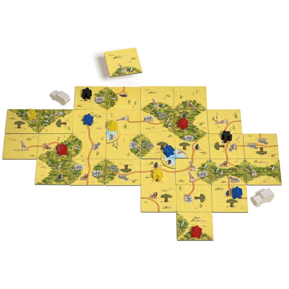 Ein tierisches Legespiel in der Savanne Afrikas für 2 bis 5 Spieler ab 8 Jahren Tropische Hitze liegt über Afrika. Wir begeben uns ins die afrikanische Steppe, wo jeder Ausschau hält nach den beliebten großen Tieren Afrikas. Affen schwingen in den Bäumen, Löwe...