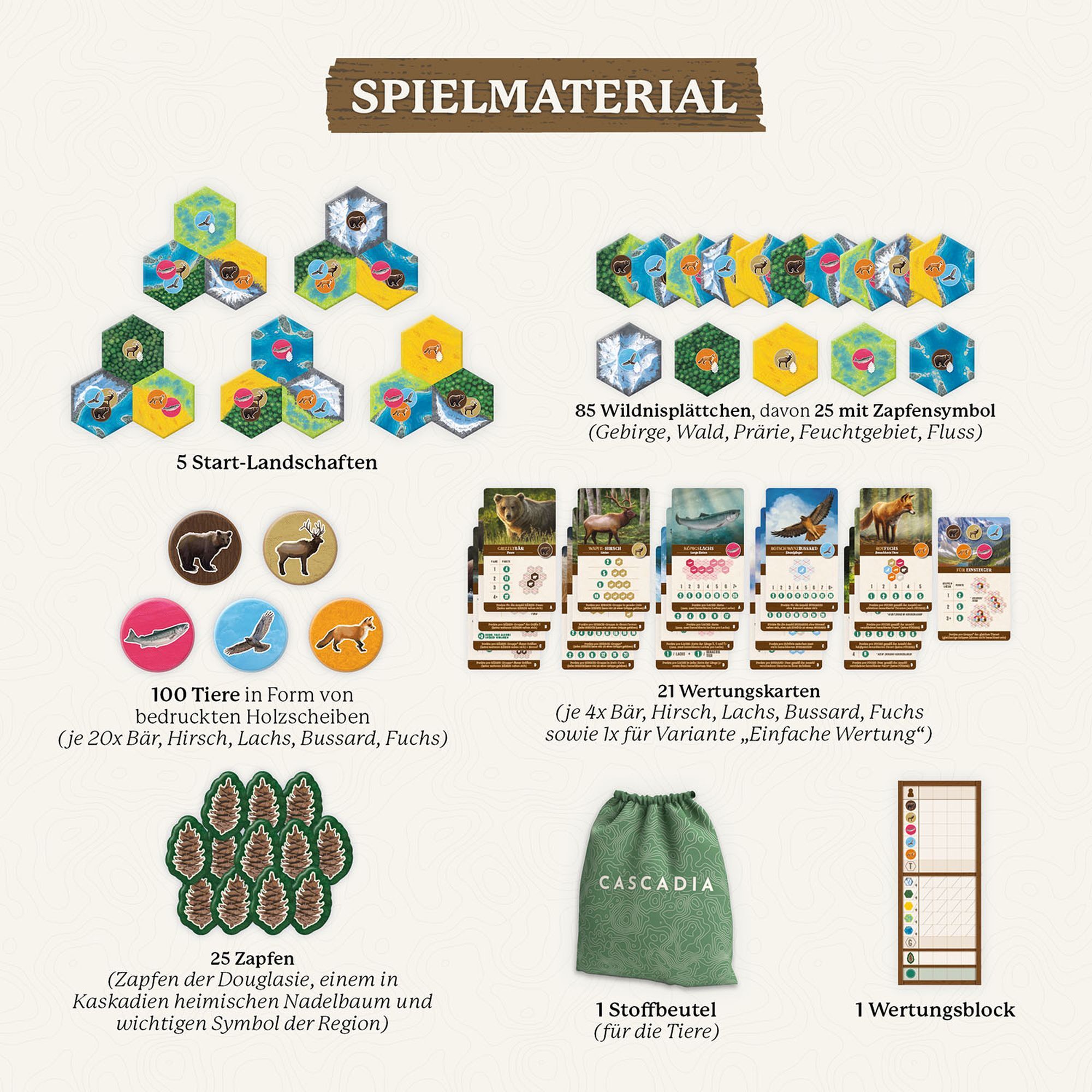 Ausgezeichnet als "Spiel des Jahres" 2022 Abwechslungsreiches Legespiel für die ganze Familie. Willkommen in Cascadia! Hier, im Nordwesten Amerikas, fühlen Tiere sich wohl: Bussarde kreisen in den Lüften, Bären treten paarweise auf, Hirsche machen sich auf die...35 Kunden haben diesen Artikel kürzlich gekauft.