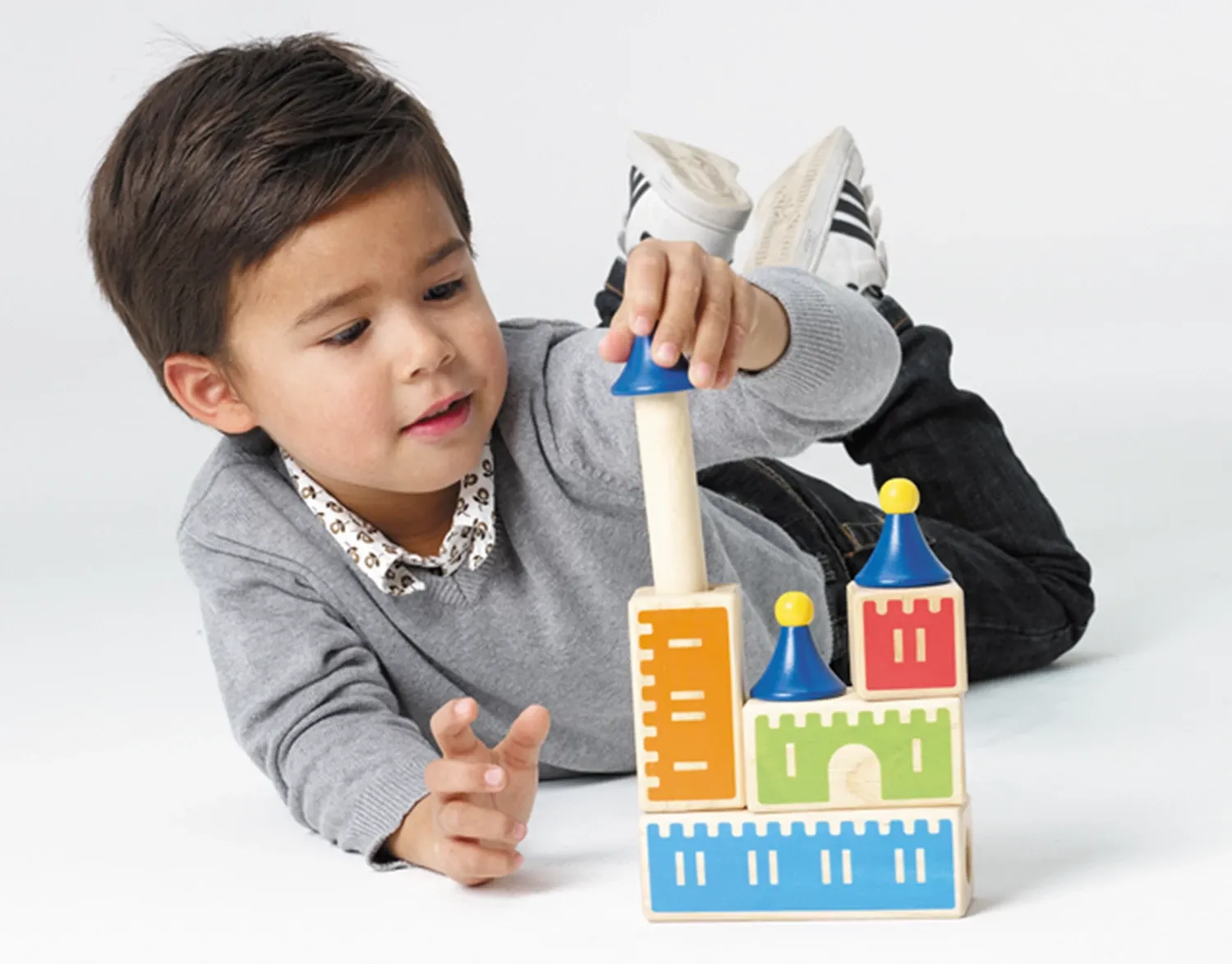 Bau' das Schloss! So viele Türme, Mauern und Dächer schaffst du es, die Schlösser fertig zu bauen? Dieses hochwertig gestaltete 3D-Holzspiel ist eine Herausforderung für alle Burgfräulein und Schlossherren. Die unterschiedlich geformten Holzteile sind so mitei...