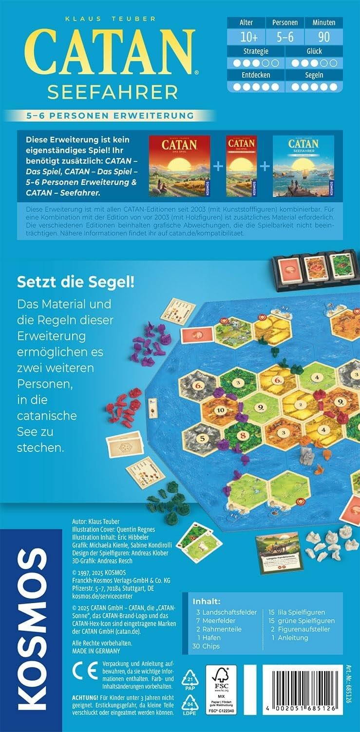 Bitte beachten: Diese Erweiterung ist kein eigenständiges Spiel! Ihr benötigt zusätzlich: CATAN-Das Spiel, CATAN-Das Spiel die 5-6 Personen Erweiterung & CATAN-Seefahrer. Umfangreich überarbeitete Neuauflage der 56 Personen Erweiterung zu der Erweiterung Seefa...