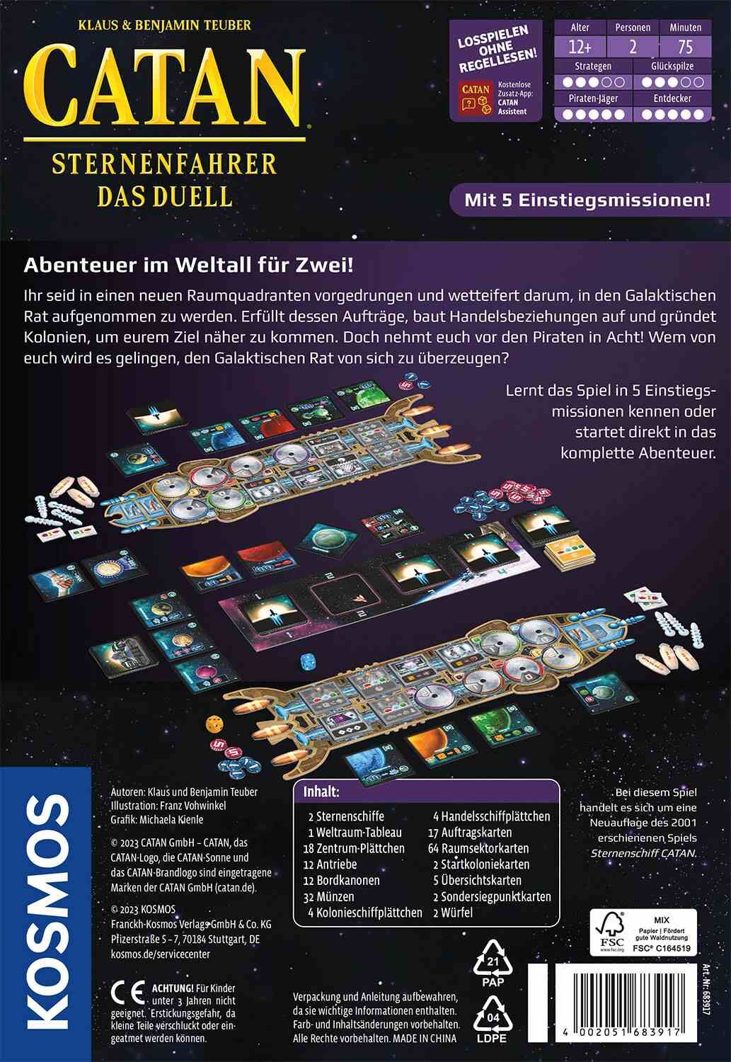 Die Sternfahrer steuern ihre Raumschiffe geschickt durch den Weltraum, erkunden Planeten und bekämpfen Piraten. Die umfangreich überarbeitete Neuauflage des beliebten Abenteuers CATAN Sternenschiff für zwei Personen ab 12 Jahren. 2 Sternenschiffe, 18 Produktio...