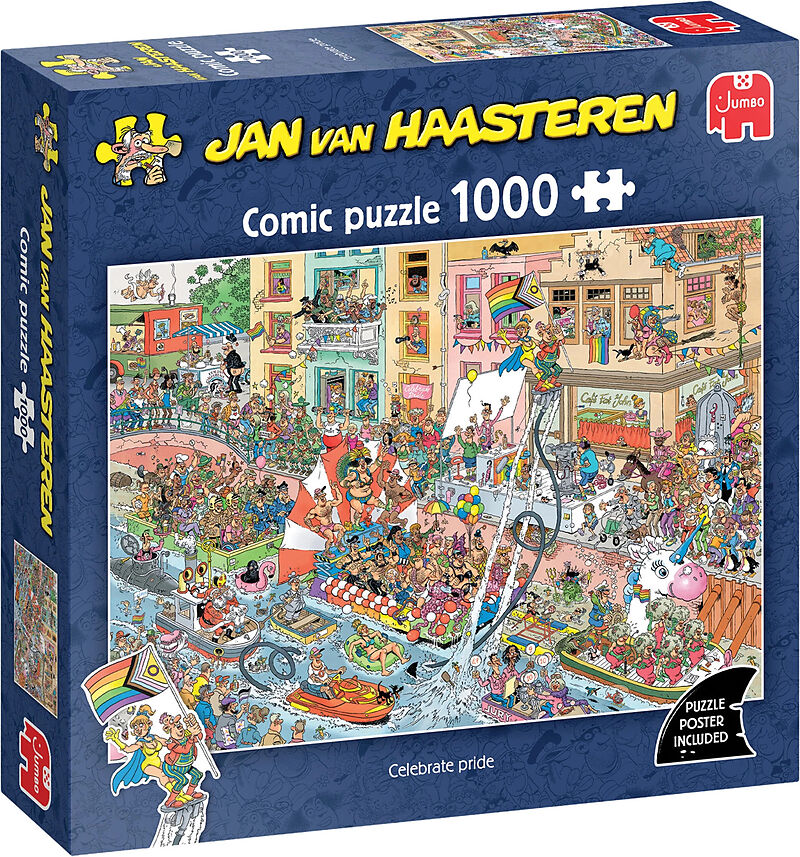 Seit Jahrzehnten gestaltet Jan van Haasteren äusserst detailreiche, bunte und vor allem humorvolle Illustrationen. Die meisten seiner Fans suchen sofort nach Jans Markenzeichen - der Haiflosse, die auf jedem Puzzle zu finden ist.