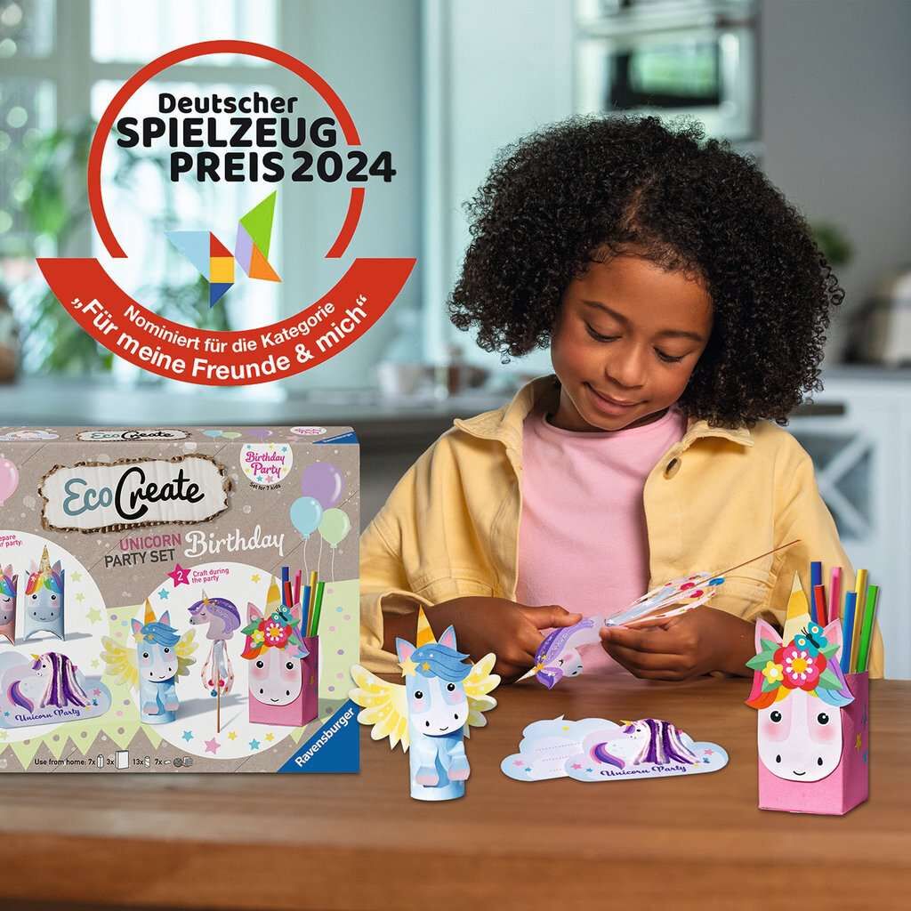 Im EcoCreate Bastelset #EcoCreate - Celebrate your Unicorn Birthday# von Ravensburger ist alles enthalten, um aus nicht mehr benötigtem Material (z.B. leere Getränkekartons oder Toilettenpapierrollen) von zu Hause, tolle und einzigartige DIY Projekte zu bastel...
