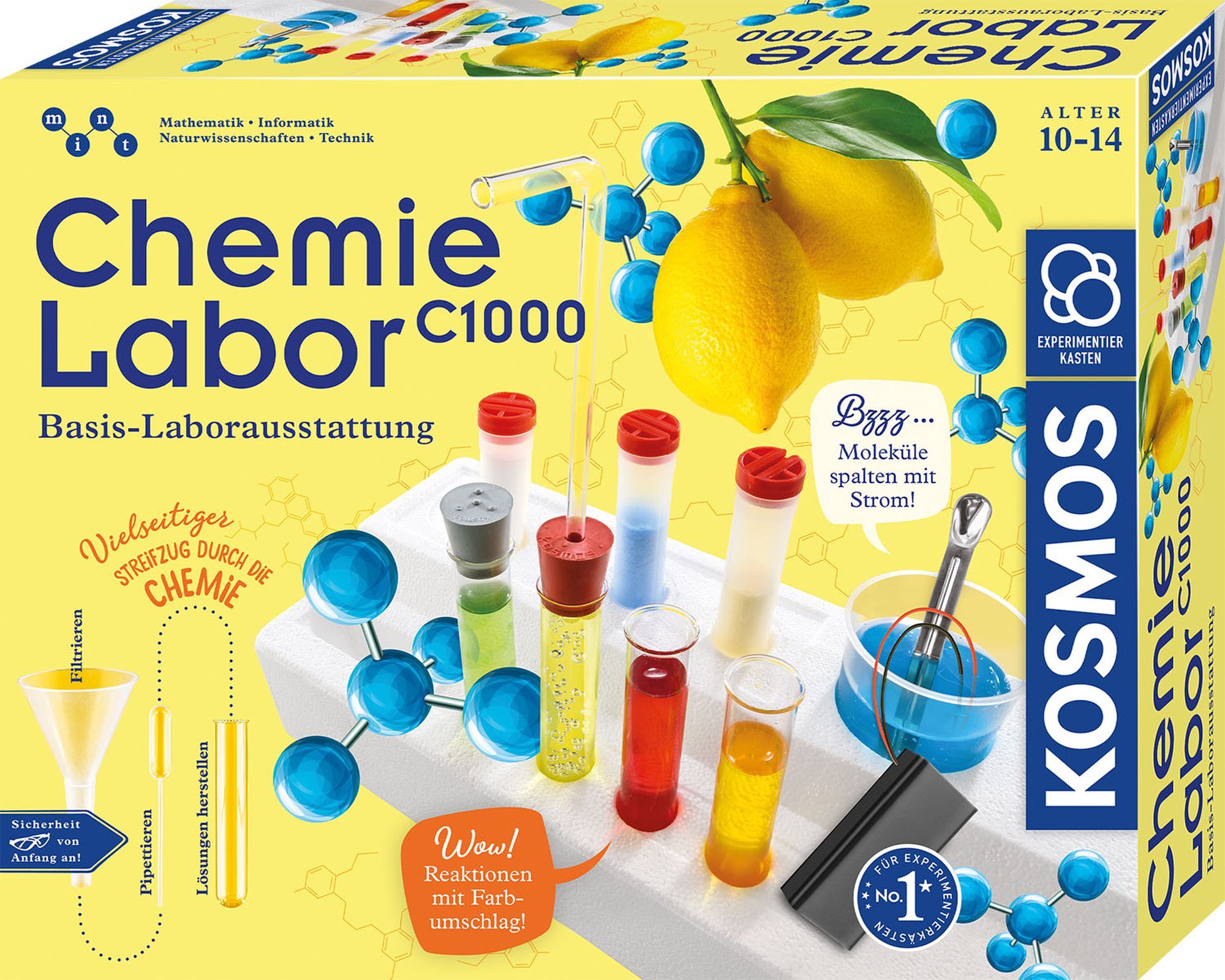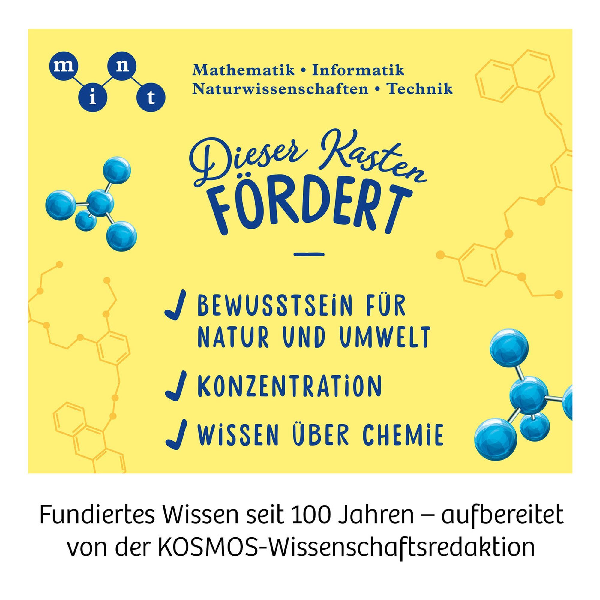 Chemielabor C1000 Mit dem KOSMOS Chemielabor C1000 entdecken neugierige Kinder die Welt der Stoffe: Du willst wissen ... wie man chemische Stoffe aufspürt? ... wie man chemische Bilder malt? ... welches Gas im Mineralwasser sprudelt? Junge Entdecker beobachten...