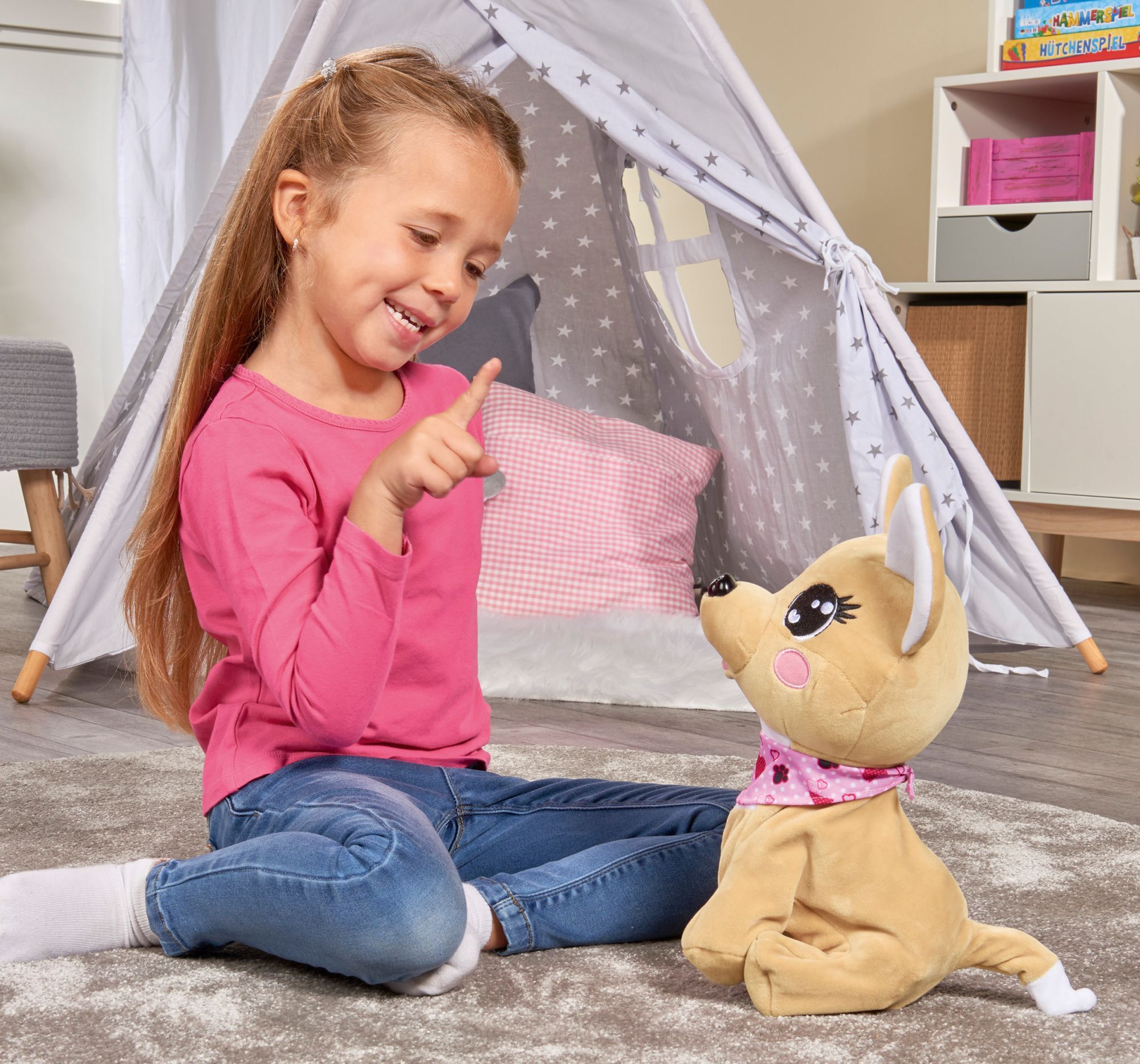 Reagiert auf 12 Sprachbefehle mit über 60 verschiedenen Sounds, 30 cm, Try me Funktion. Ab 4 Jahren.