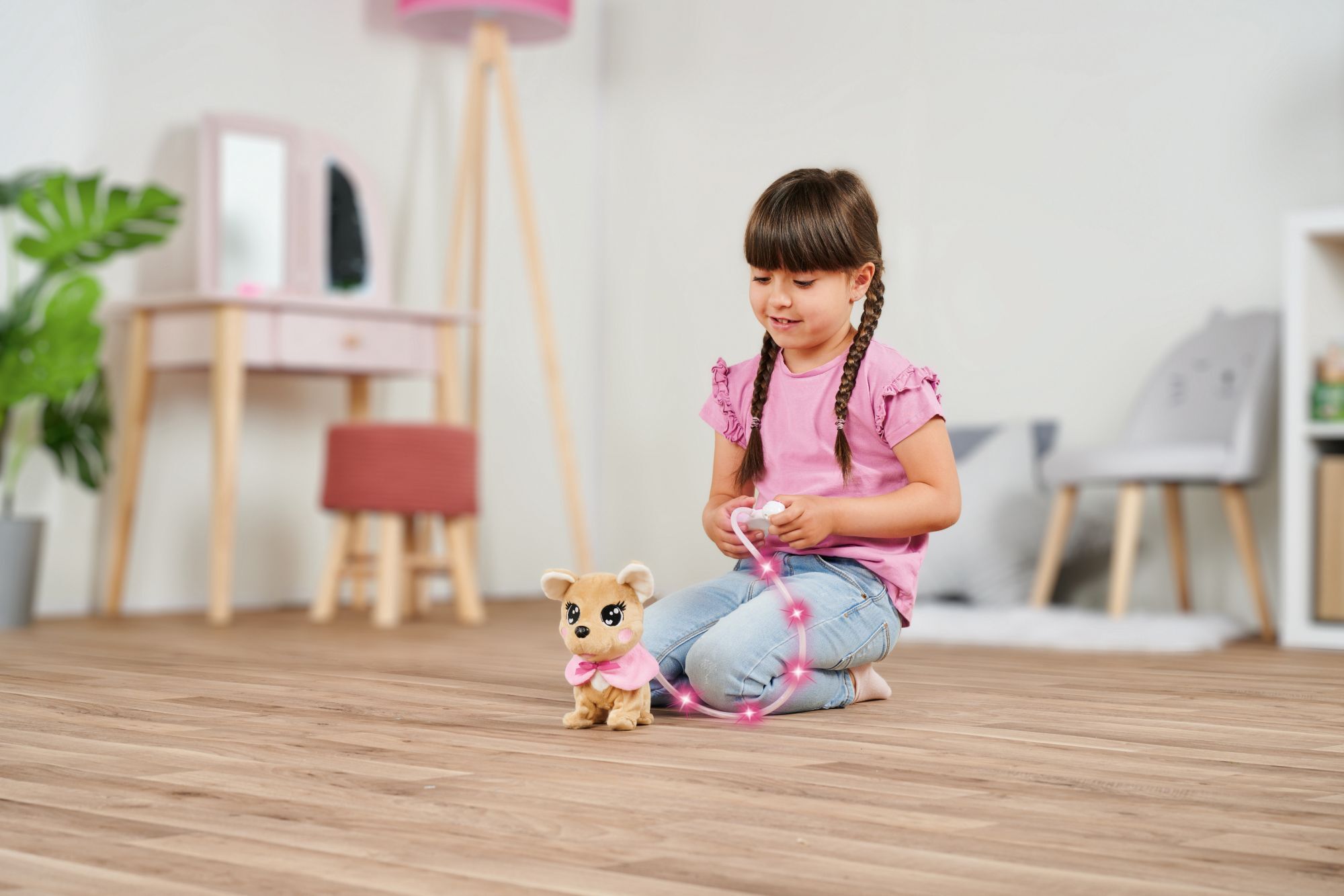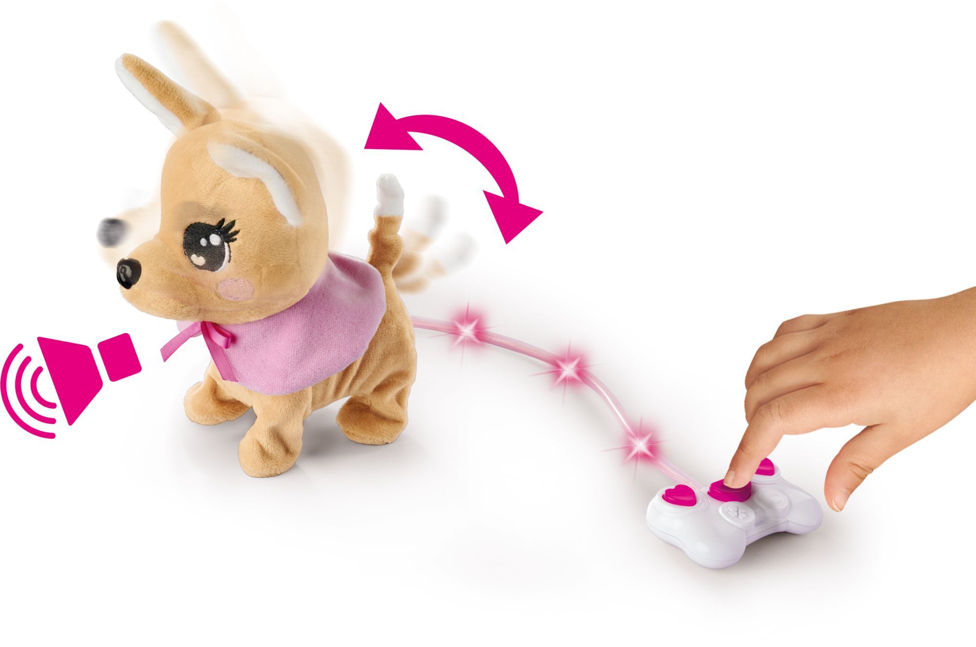 Chi Chi Love Loomy ChiChi LOVE - die beliebten ChiChi LOVE Hunde greifen aktuelle Modethemen auf und sind mit trendiger Kleidung und vielen Accessoires ausgestattet. ChiChi LOVE Loomy trägt ein rosa Cape mit Schleifchen. Mit Kabelsteuerung - Chihuahua ChiC...