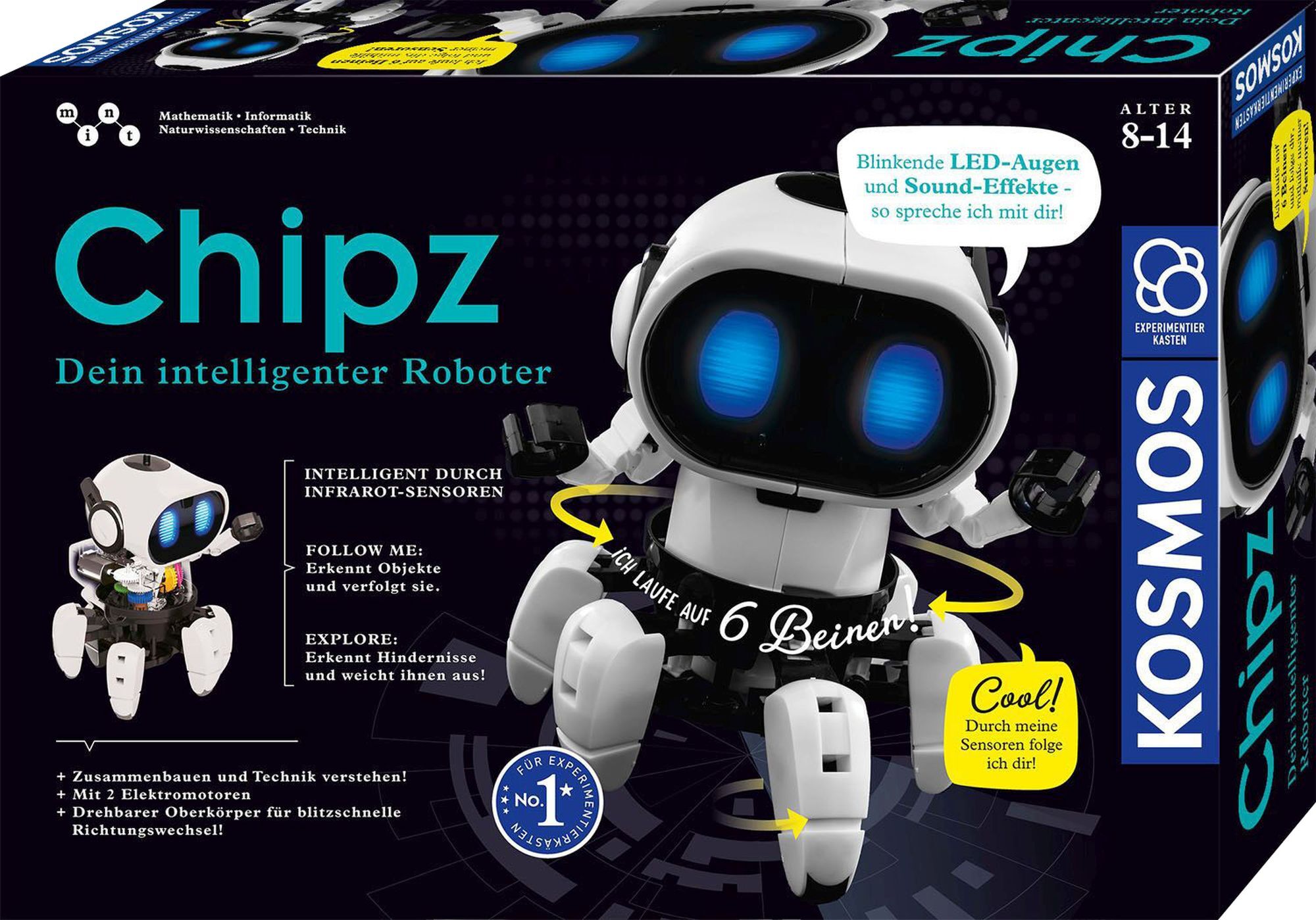 Gestatten: Chipz Dein intelligenter Roboter, Zwei Motoren, eingebaute Infrarot-Sensoren und intelligente Spiel-Modi machen Chipz zu einem schlauen Hightech-Freund. Im Follow-me-Modus erkennt er Objekte und folgt zum Beispiel seinem Besitzer, im Explore-Modus u...