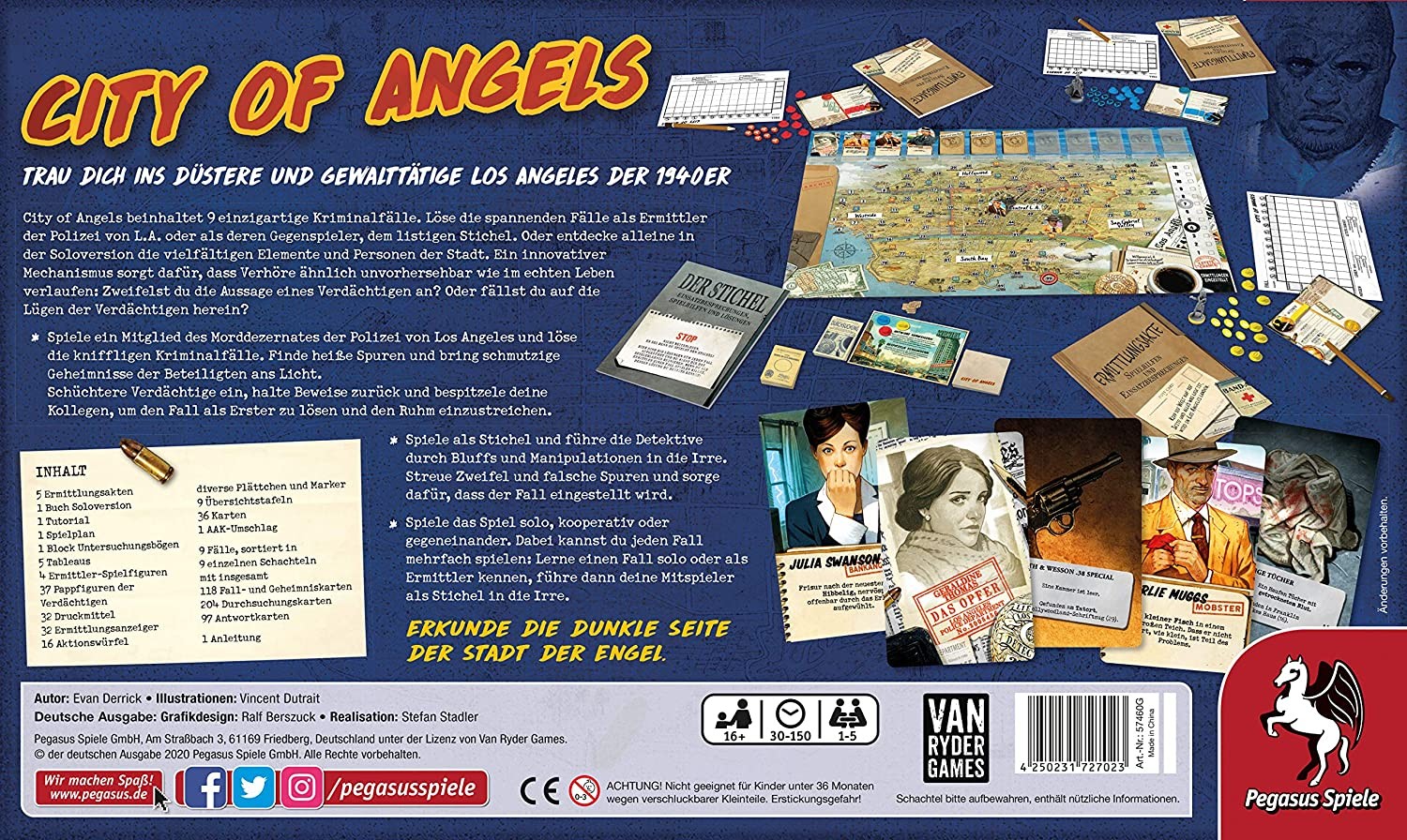City of Angels spielt im Los Angeles der 1940er Jahre und ist ein Spiel der Geheimnisse, Täuschungen und Ermittlungen. Die Mehrheit der Spieler schlüpft in die Rollen von LAPD Detectives die bereit sind, alles zu tun, um einen Fall erfolgreich abzuschließen. E...