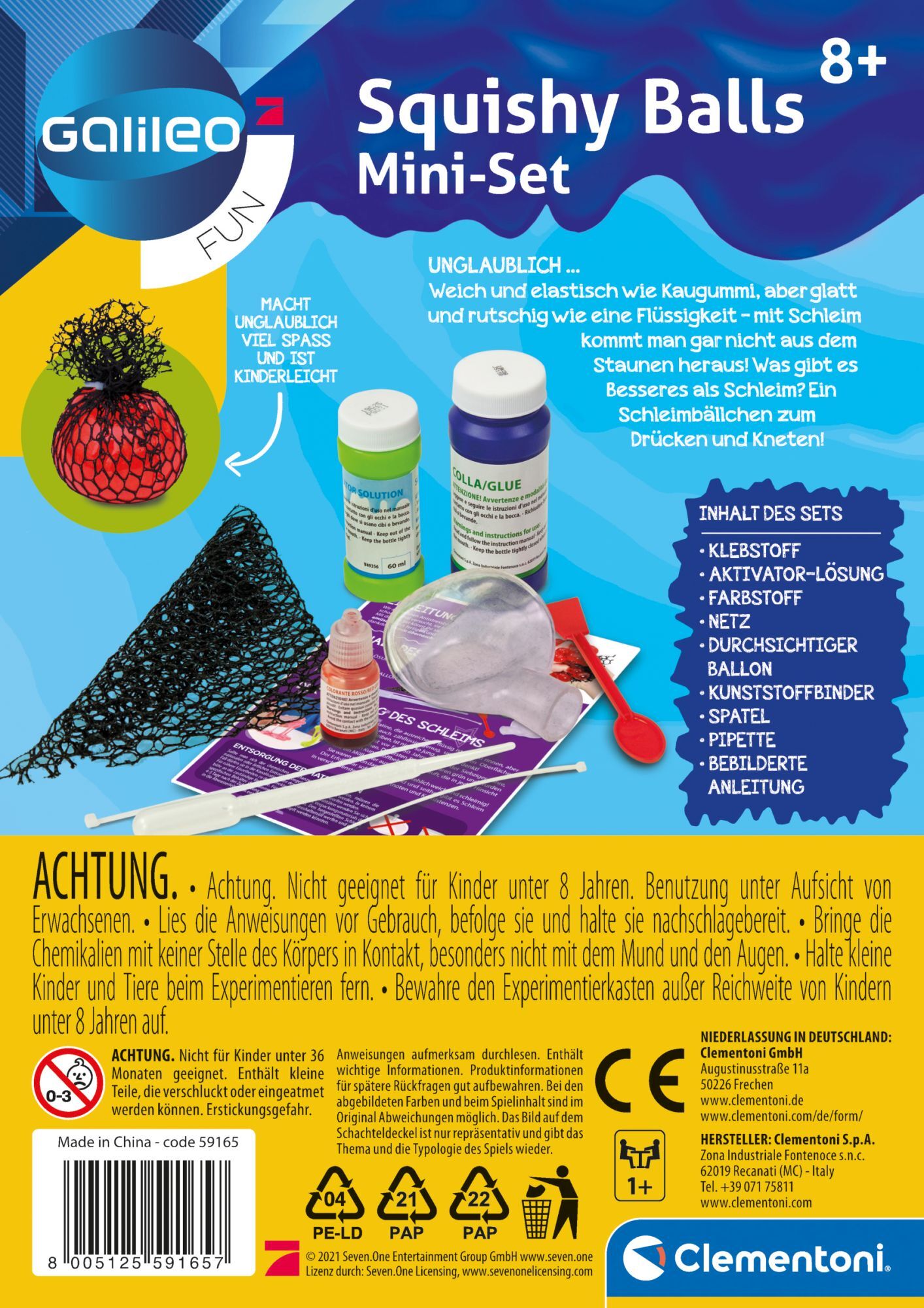 Clementoni Squishy Balls Aus diesem tollen wissenschaftlichen Set zum Herstellen unglaublich weicher Bälle lässt sich das Vergnügen geradezu herausquetschen! Man braucht nur den Ball im Set mit speziellen farbigen Kugeln zu füllen und kann sich nach wenigen Mi...