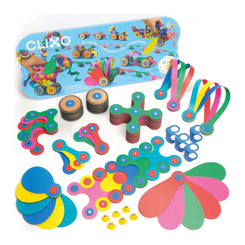 Die flexiblen Formen, mit integrierten Magneten, lassen sich einfach und hörbar zusammenklicken und in alle Richtungen drehen - perfekt für die unendliche Kreativität. Der Fantasie sind keine Grenzen gesetzt. Die Sets und Farben lassen sich beliebig untereinan...