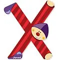 Buchstabe Clown X 8x0.7x9.5cm 10 gr, aus Holz