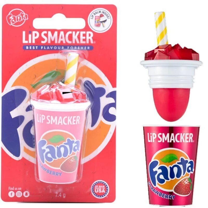 Der Lippenpflegestift im Coke Cup mit Fanta Strawberry Geschmack vereint authentisches Design und Geschmack der typischen Fanta Strawberry. Er spendet Feuchtigkeit für die Lippen und passt perfekt in jede Tasche.