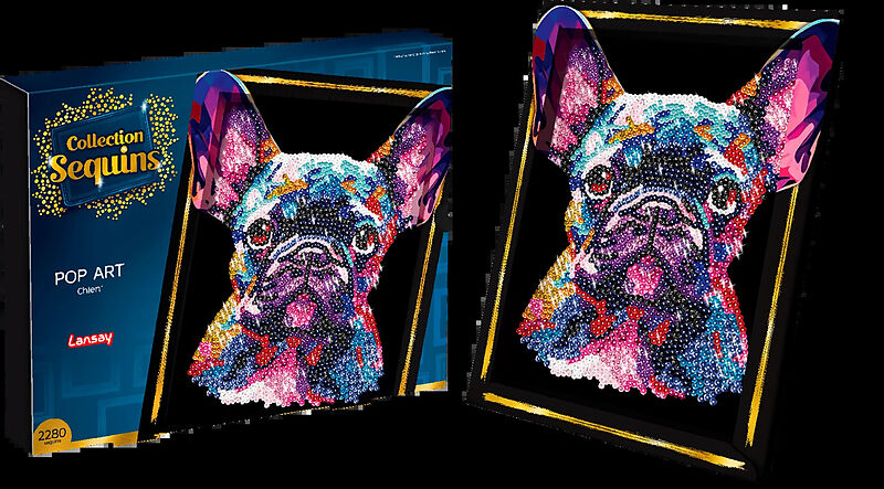 Mit Pailletten ein schönes Bild kreieren. Die Abbildung vom Hund liegt auf einer Styroporplatte, die als Basis für die Befestigung dient. Es sind kleine Nadeln enthalten. Inkl. Setzkasten als Ablage für die verschiedenen Pailletten. Dank dem Rahmen lässt sich ...