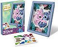 Mit glitzernden Pailletten ein schönes Bild kreieren. Die Abbildung der beliebten Disney Charaktere Stitch & Angel liegt auf einer Styroporplatte, die als Basis für die Befestigung dient. Der Setzkasten dient als Ablage für die verschiedenen Pailleten inkl. kl...