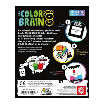 Das erfolgreiche Farben-Quiz geht in die zweite Runde! Color Brain Go! liefert 200 Fragen quer durch die Farbpalette. Es ist eigenständig spielbar, funktioniert aber auch als Erweiterung zum Grundspiel Color Brain mit bis zu 6 Teams. Das erfolgreiche Farben-Qu...