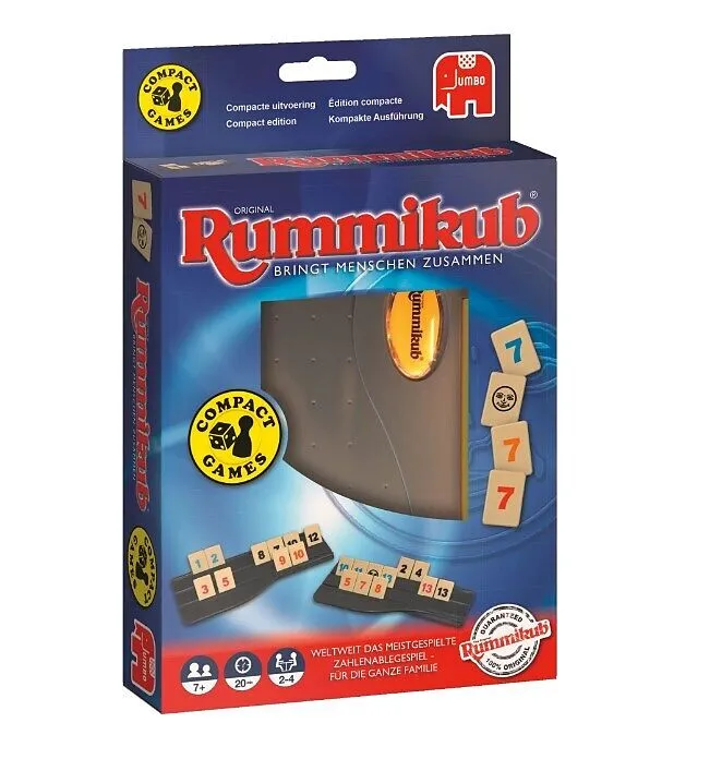 Jumbo 03942 Travel Rummikub Einfach zum Mitnehmen! Das Rummikub-Kompaktspiel in einer praktischen kleinen Aufbewahrungsbox mit kleinen Spielsteinen für unterwegs. Und so funktioniert es: 1. Jeder Spieler bekommt verdeckt 14 Spielsteine von seinem linken Mitspi...