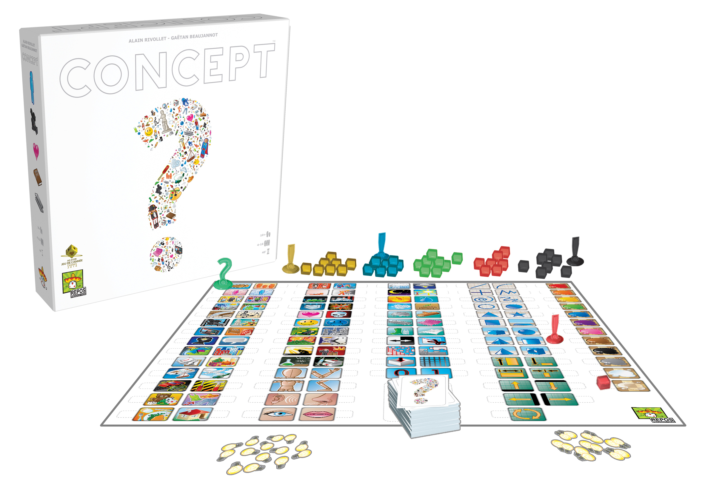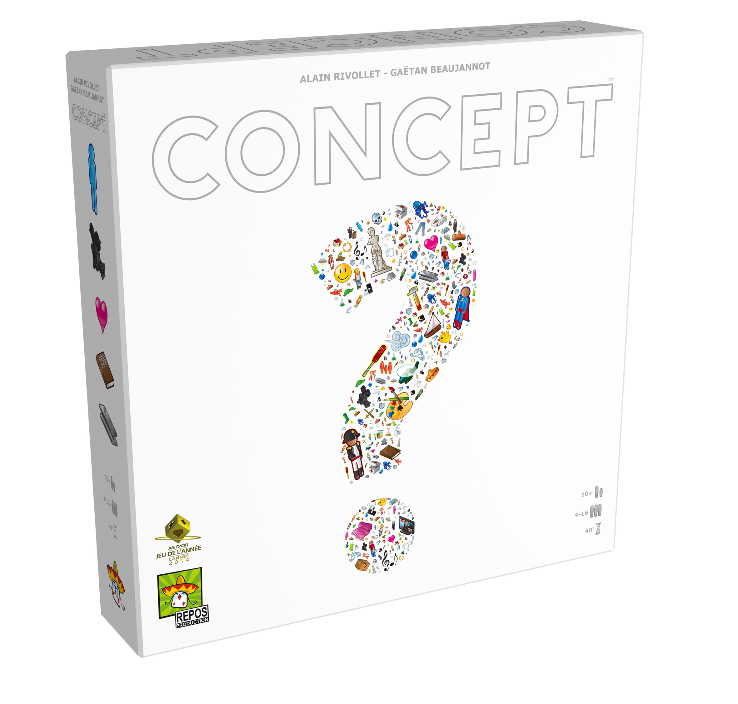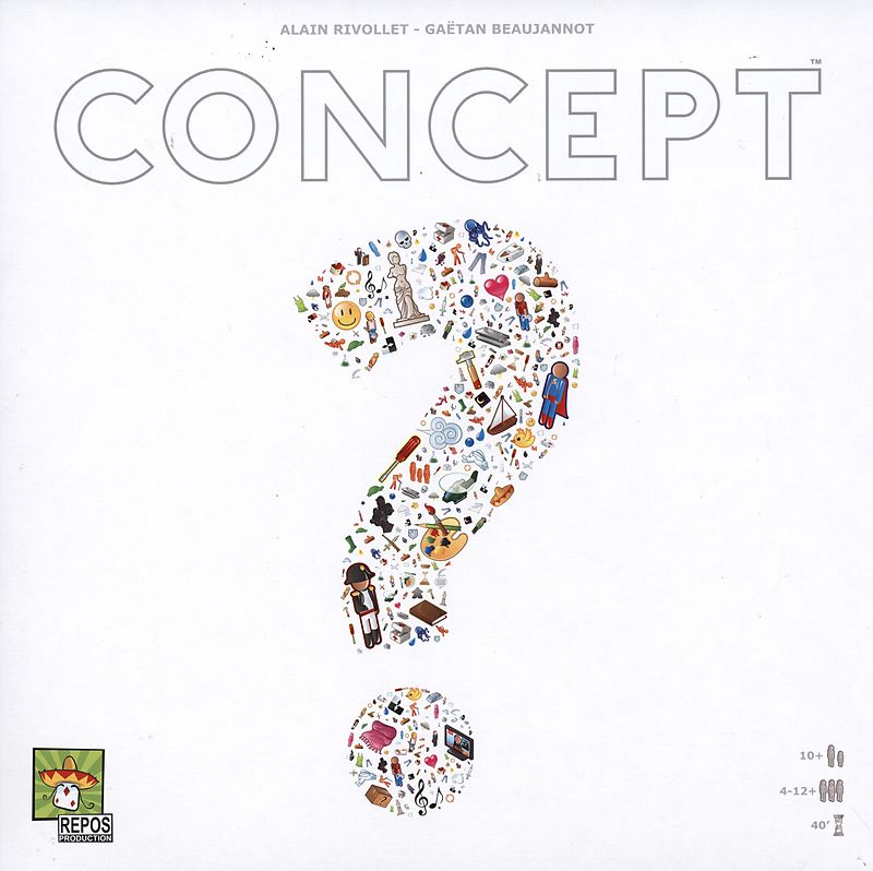 Asmodee Repos - Concept In welchem Zusammenhang stehen diese Symbole? In CONCEPT kommunizieren die Spieler ausschließlich über universelle Symbole, die flexibel miteinander kombiniert werden. So ist es tatsächlich möglich stumm zu kommunizieren, ohne auch nur ...