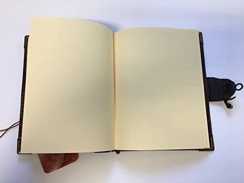 Wunderschönes Notizbuch mit extravagantem Ledereinband und viel Platz für geniale Entwürfe auf antik wirkendem Blankopapier. Mit Verschluss aus Metall und schöner Applikation auf der Vorderseite. Diese Bücher beflügeln die Denkvorgänge im Gehirn des Schreibend...