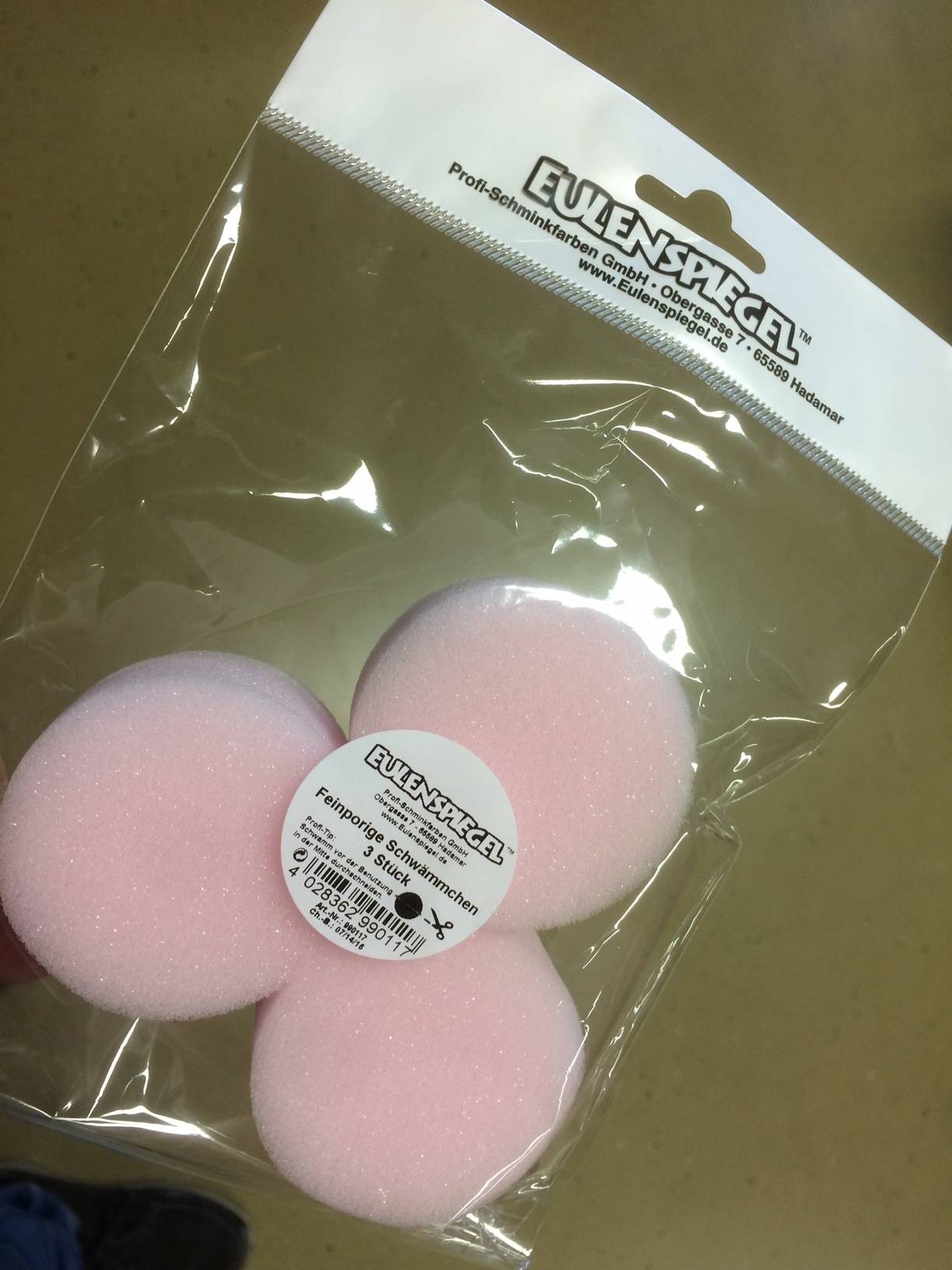 Schwämmchen von Eulenspiegel zum Auftragen von Schminke, auch zum abschminken geeignet. Mit einer Schere gut teilbar, dadurch optimal nutzbar. Im Set sind drei Schwämmchen.