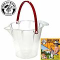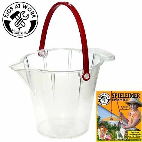 Ein prima Eimer mit Henkel, Griff und großem Ausguss, 17 cm hoch, 19 cm weit. Transparent. Ideal als Waagschale für unsere neue Waage!